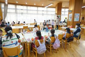 近隣にある石神幼稚園は今日からスタート。 石神幼稚園の園児は、週4日石神小学校のランチルームで給食を食べています。 12時頃になると、楽しそうに小学校にやってきます。 給食を食べている時に顔を出すと、今日も「給食、おいしかった!」「残さず食べたよ!」と元気な声。 年長さんは4月から石神小学校の仲間入り。 今から登校してくるのが楽しみです。 |