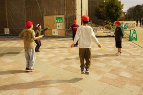 今日から全校で「なわとびチャレンジ週間」が始まりました。 初日は、各自短なわにチャレンジです。 なわとび検定カードをもった子供たちはそれぞれ自分の課題に向かって一生懸命練習に励んでいました。 |