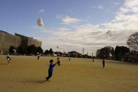 3校時の生活科「さむくなってもあそぼうよ」の学習では、校庭で凧あげに挑戦しました。 これまでの生活科の時間で、一人一人凧をつくり、好きな絵を描いて凧を完成させました。 子供たちは、風にのってぐんぐんあがる凧を嬉しそうに見上げながら、元気に走り回っていました。 「また、みんなでやりたい!」「家で家族にも見せたいな」 青空の下、思い切り凧揚げを楽しむことができ、子供たちは大満足でした。 |