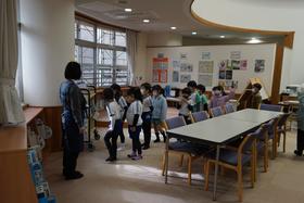 今回は石神幼稚園の年長さんが来校し、図書室の見学をしました。 図書館指導員の先生から図書室を案内された園児は、興味津々。 先生が「聞いてみたいこと、気になることはありますか?」というと、「何冊借りられるの?」「なぜ本に番号がついているのかな?」「この本についているシールは何ですか?」など、次々に質問が飛び交いました。 子供たちの知的好奇心と小学校生活への期待が感じられる時間でした。 今後のこ保幼小交流の機会も楽しみです。 |